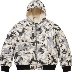 シープスキンシアリングで仕立てたショット製フード付きワークジャケット。メイドインUSA。