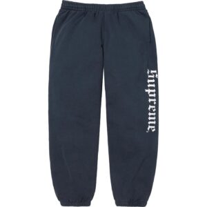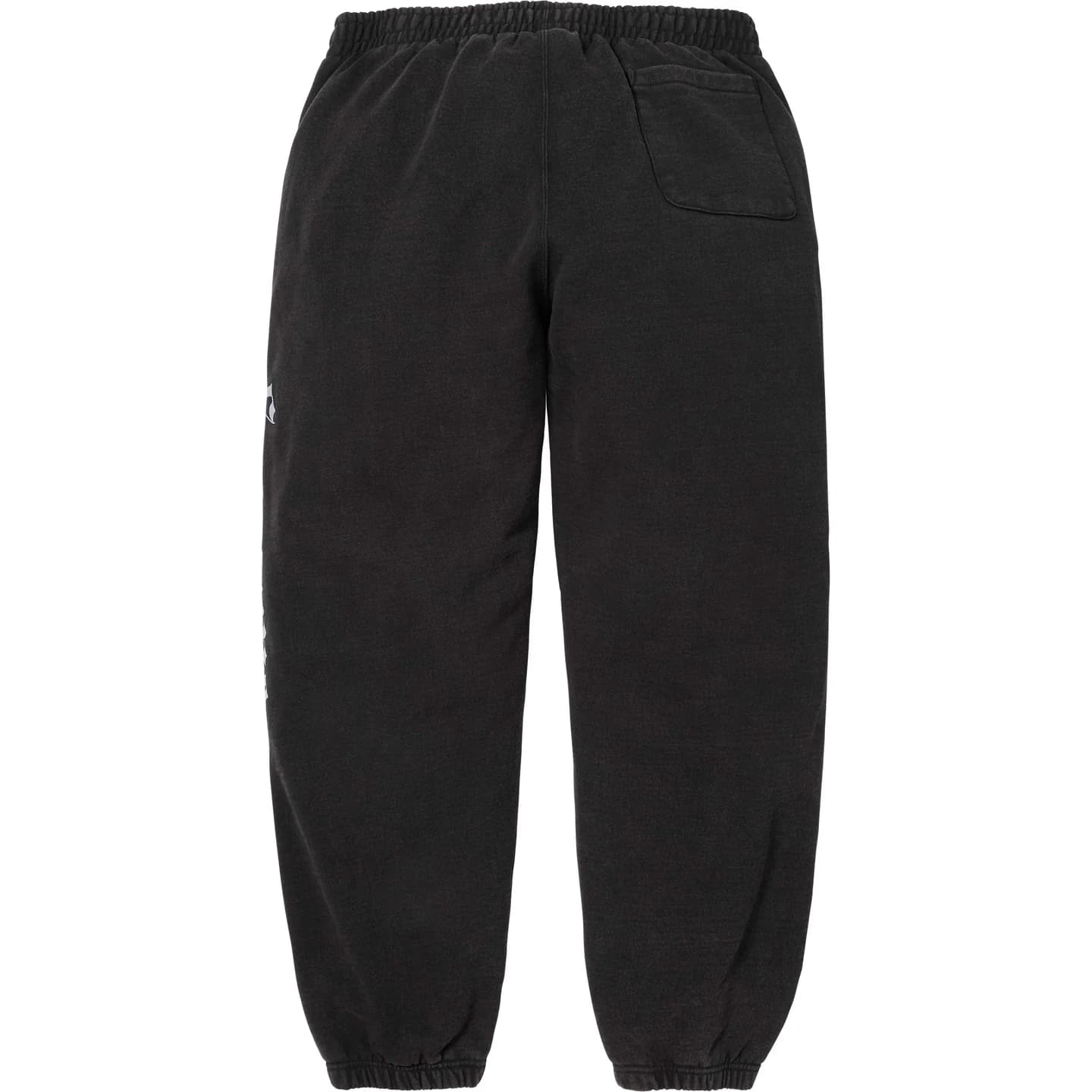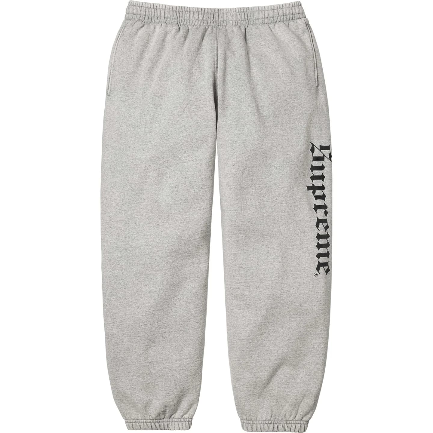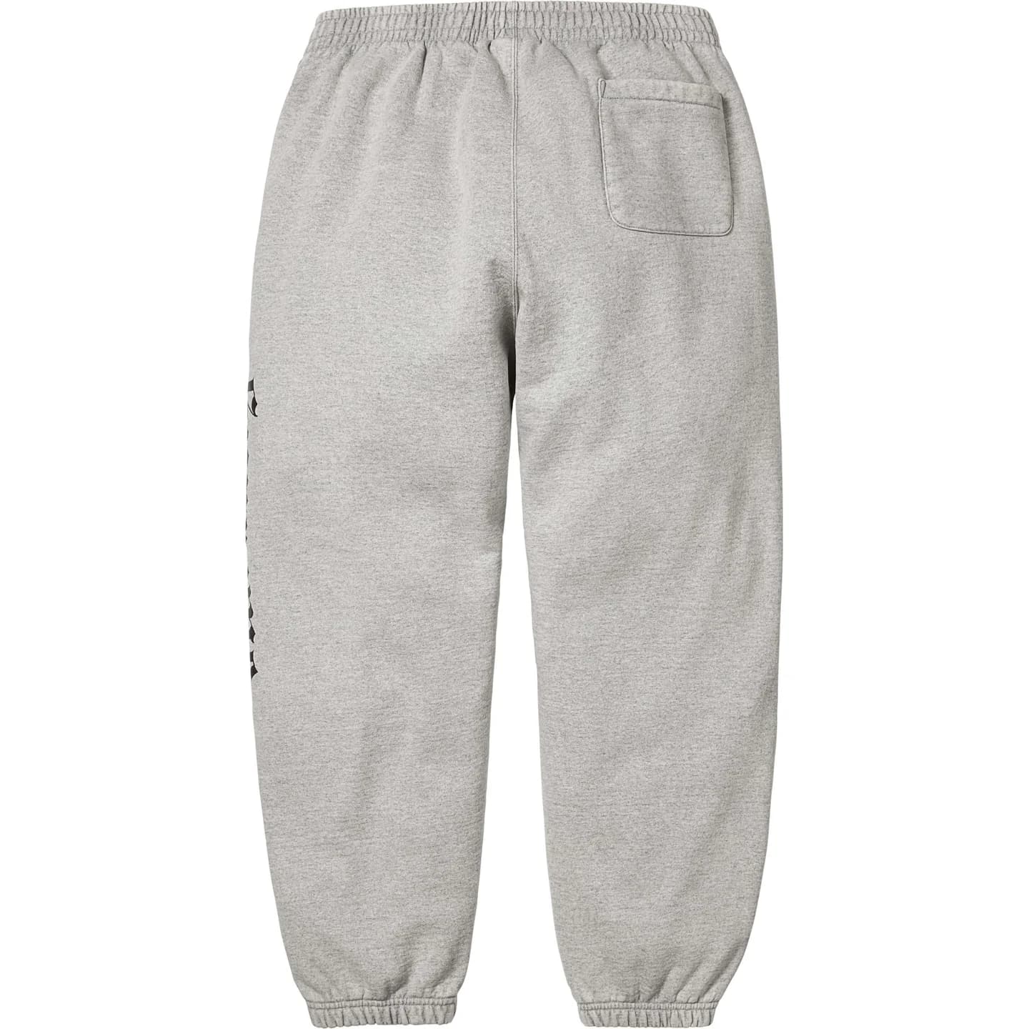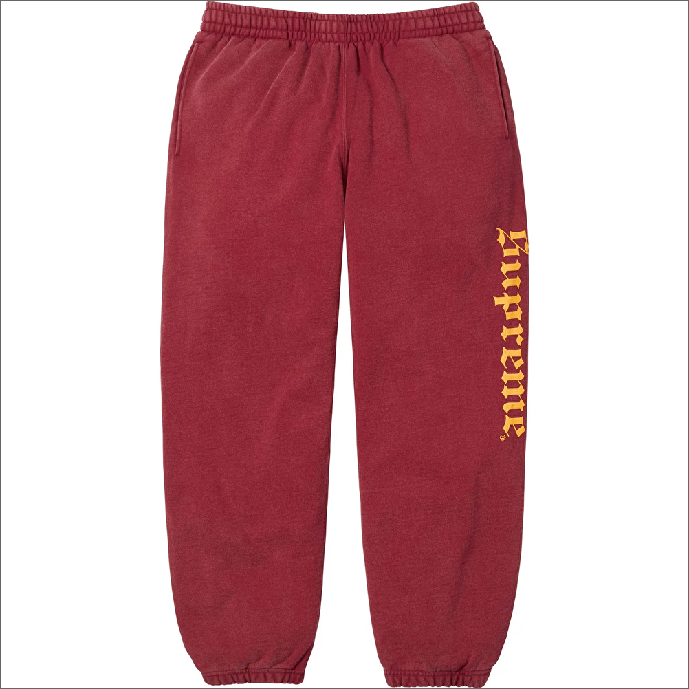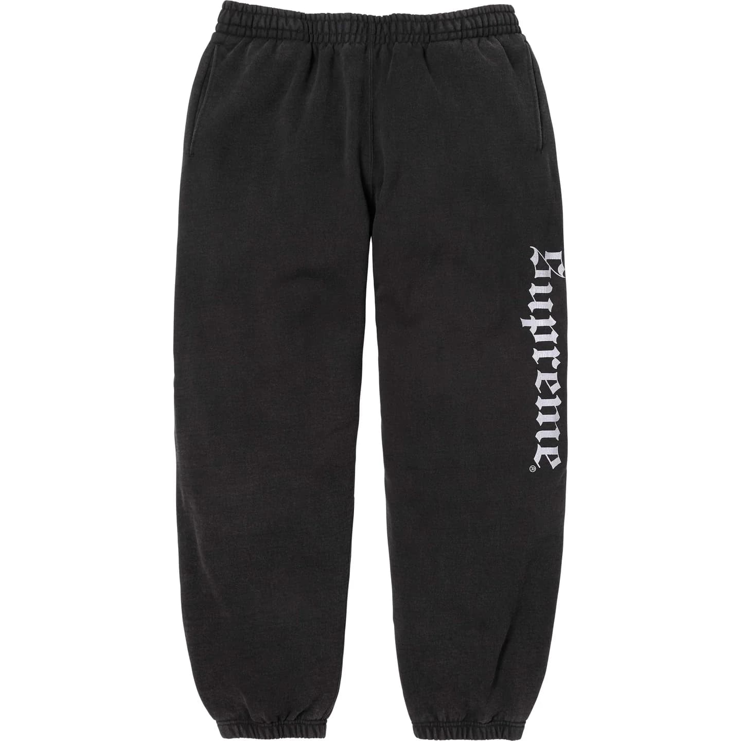 ウォッシュ加工を施したオールドイングリッシュロゴスウェットパンツ。