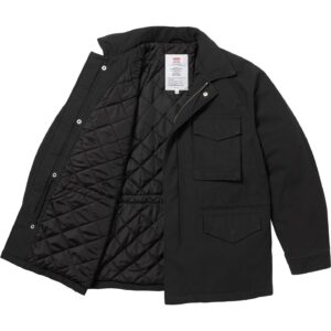 葵産業が十字架の豪華な刺繍を施したアメリカのミリタリーブランドの名門アルファ社製「M52ミリタリージャケット」。生地はミルスペック(米国防総省が定めた軍事規格)準拠のナイロンとコットンの混紡ツイル生地を採用、内側はキルティングライナーで保温性を高めてある。