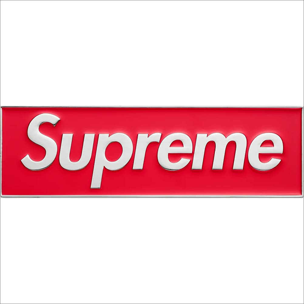 自動車のフロントグリルなどに取り付ければ、まるでシュプリーム仕様の車に見えるエナメルとクロムメッキで仕上げたボックスロゴカーエンブレム。大きさ約19cm 5.6cm