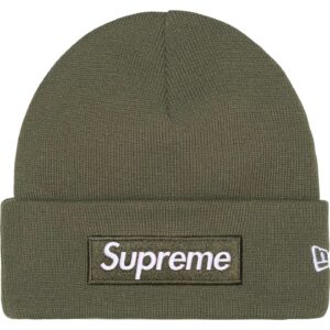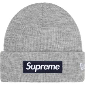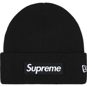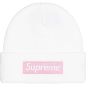 ボックスロゴを刺繡したニューエラ製のニットキャップ。