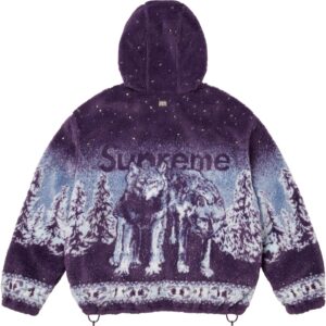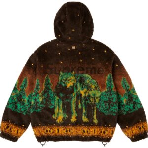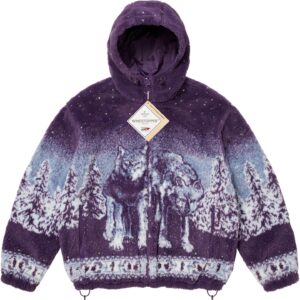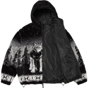 bbサイモンのメタルスタッズが夜空に浮かぶ星々を演出した、二匹の狼が印象的なリバーシブルフリースジャケット。リバースサイドはウィンドーストッパーを貼り合わせた耐水リップストップ素材のシンプルなナイロンジャケットに変更可能。