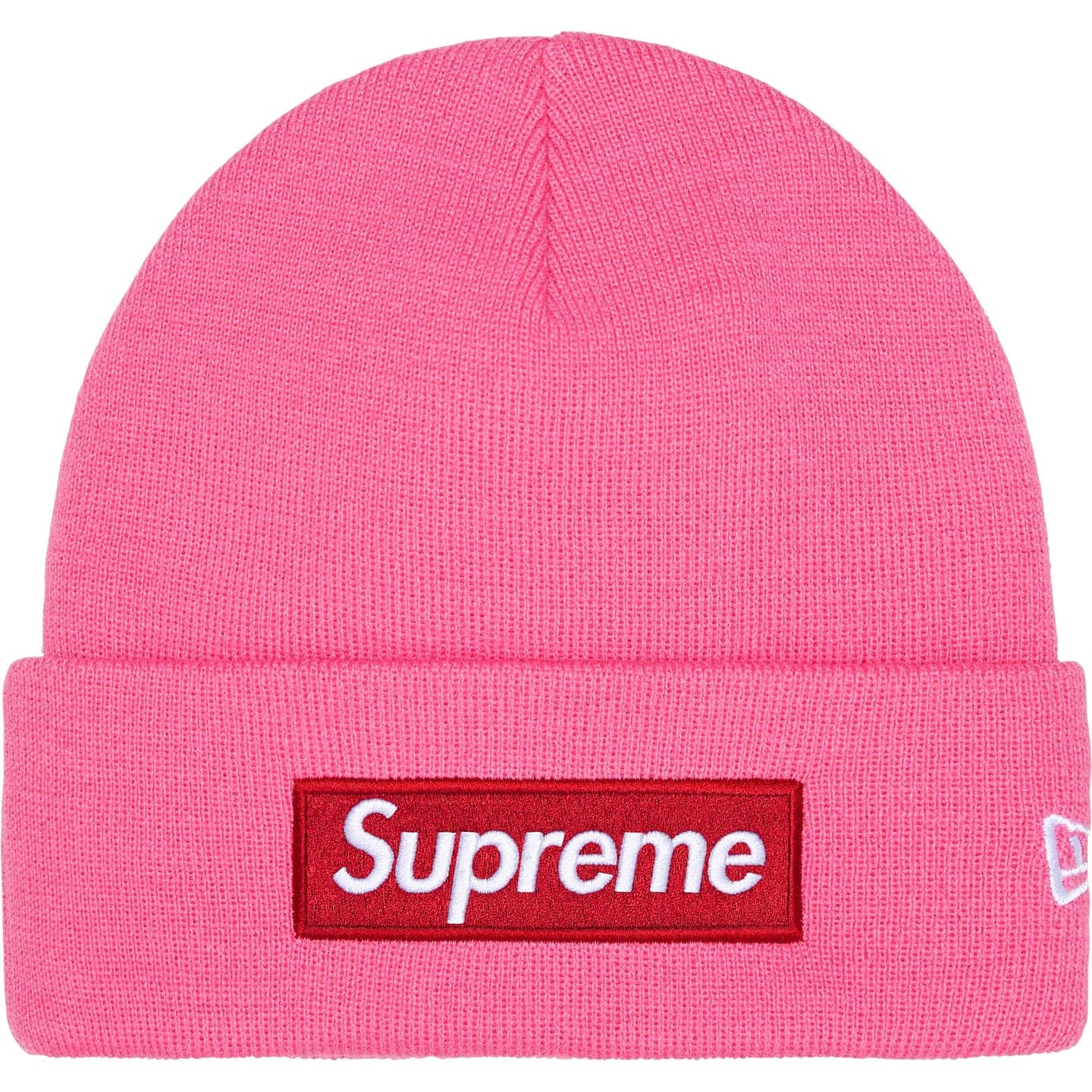 ボックスロゴを刺繡したニューエラ製のニットキャップ。