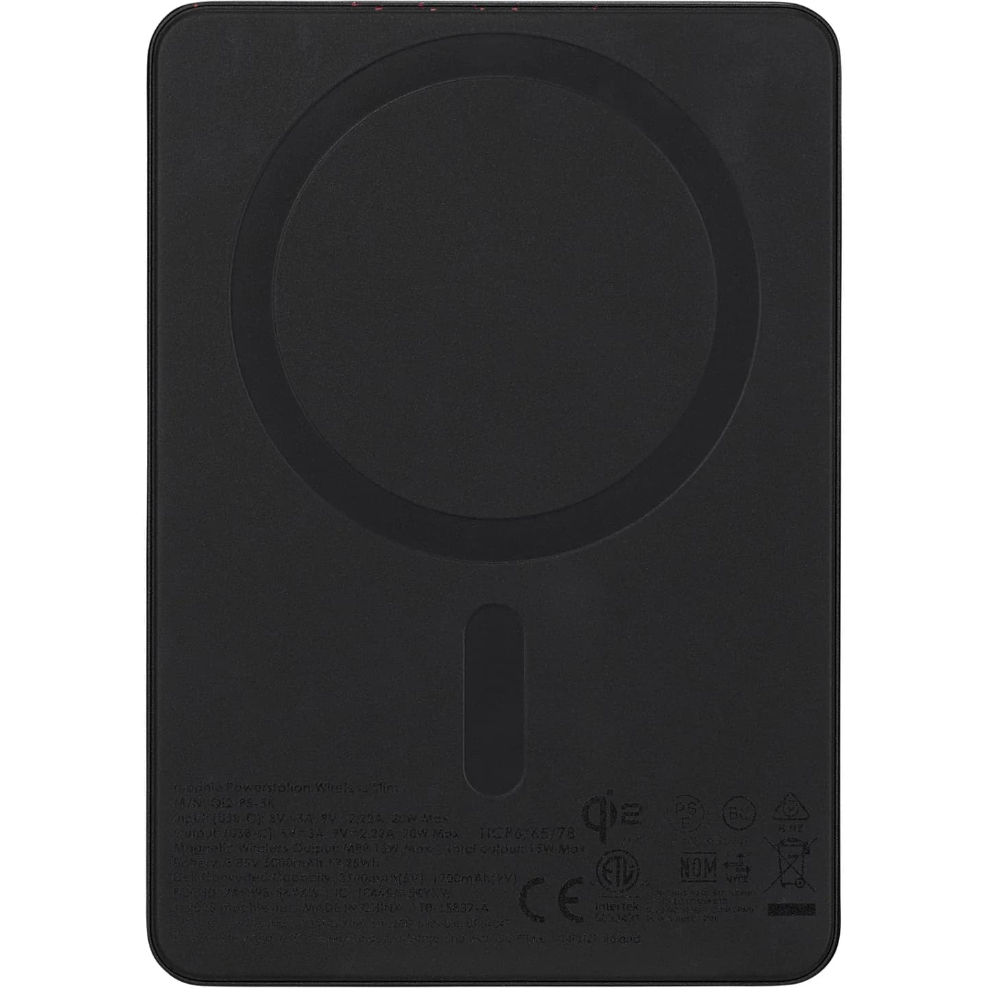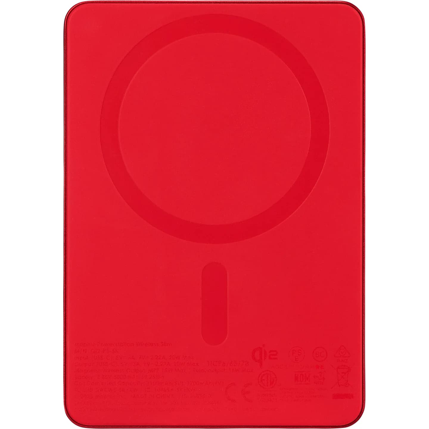 ロゴをプリントしたワイヤレス充電機能搭載のモーフィー製モバイルバッテリー(容量5,000mAh)。iPhone 15Proを1回フル充電することが可能。
