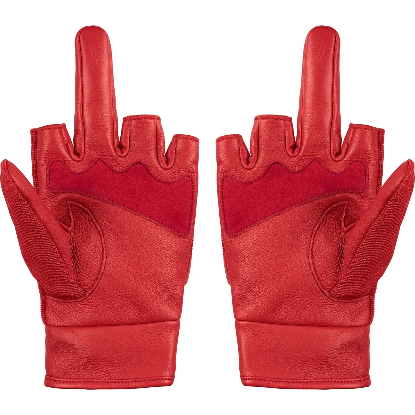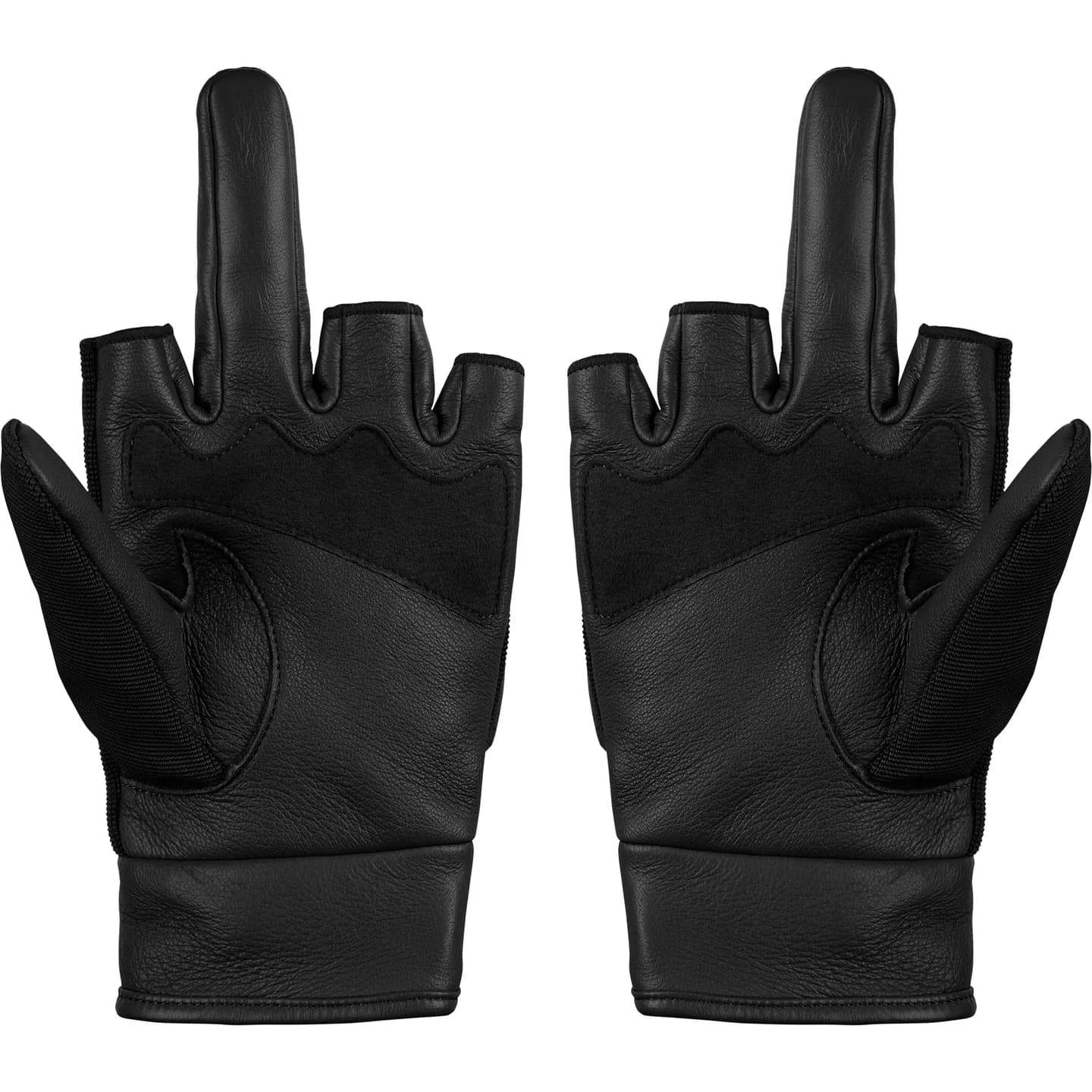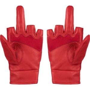 中指を立てたようなデザインのレザー手袋。