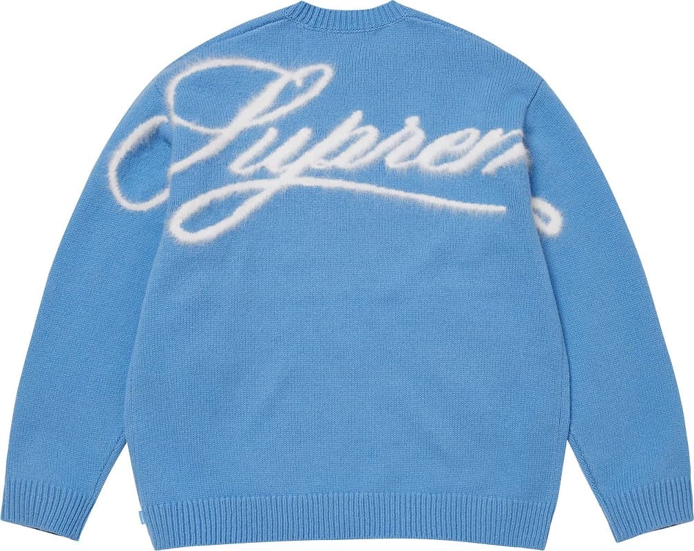 ふんわりとした毛足の長いアンゴラ毛糸でバックに大きくスクリプトロゴをデザインしたウールブレンドセーター。