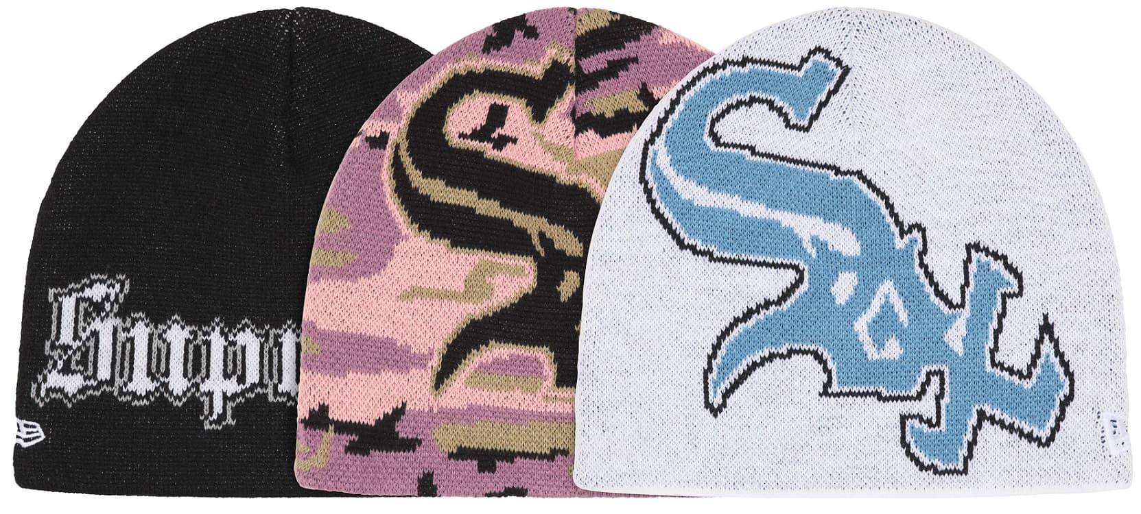 MLBシカゴホワイトソックスのチームロゴとオールドイングリッシュロゴを大きく編み込んだニューエラ製シングルカフビーニー。