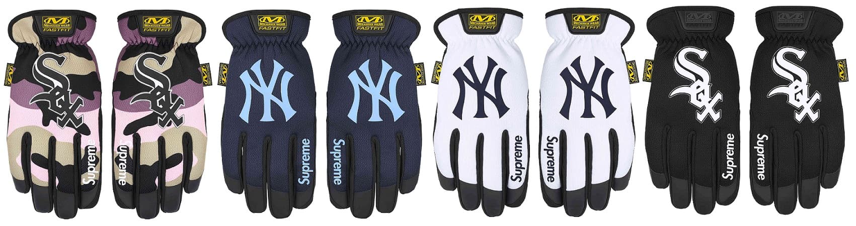 MLBニューヨークヤンキースとシカゴホワイトソックスのチームロゴをプリントした、メカニクス製中綿入りワークグローブ。