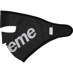 耐水ウインドストッパーにフリースを張り合わせ防風性と保温性を高めたフェイスマスク。ロゴプリントはリフレクティブ仕様。