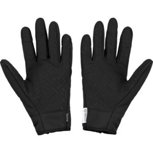 耐水ウインドストッパーにフリースを張り合わせ防風性と保温性を高めたジップグローブ。ロゴプリントはリフレクティブ仕様、タッチスクリーン対応。