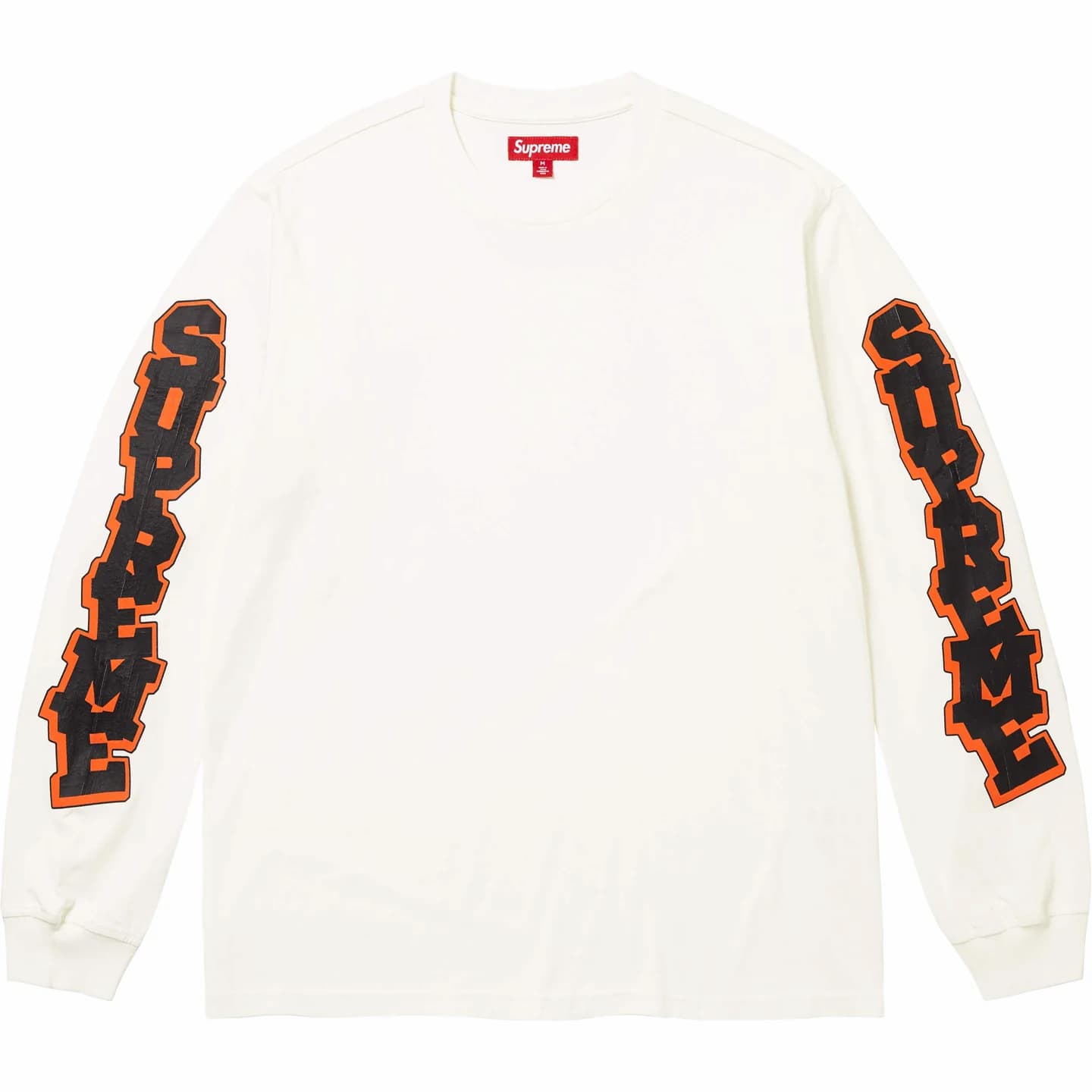 両袖にクラック加工を施したポップなロゴが映えるコットンジャージ素材のロンT。