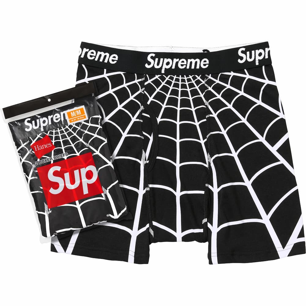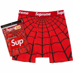 スパイダーマンとのコラボによる、蜘蛛の巣を全面プリントしたヘインズ製コットンボクサーブリーフ。