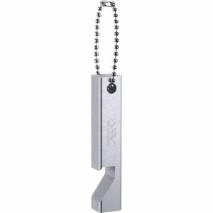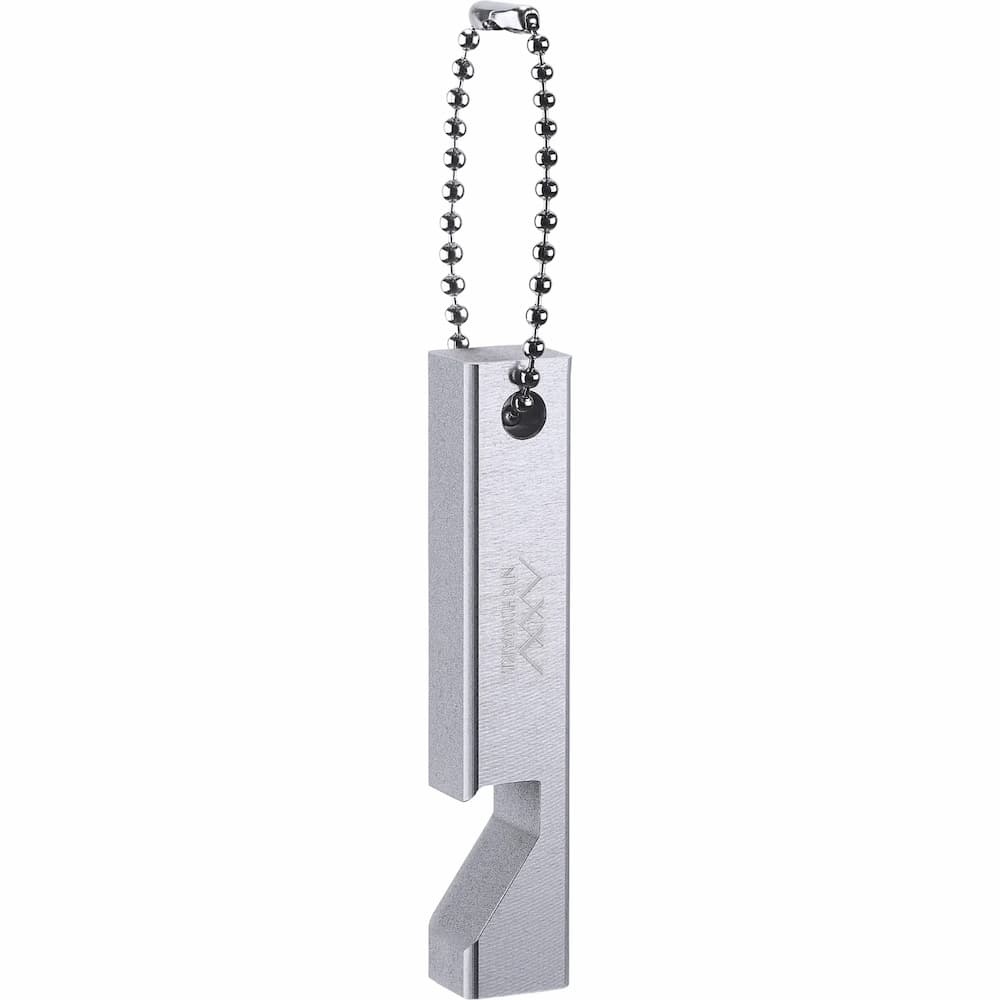 日本の金属製品ブランド「NISHIWAKI」製、ロゴを刻印したアノダイズ加工アルミニウム製ボトルオープナー。ボールチェーン付属、大きさ約12.7cm